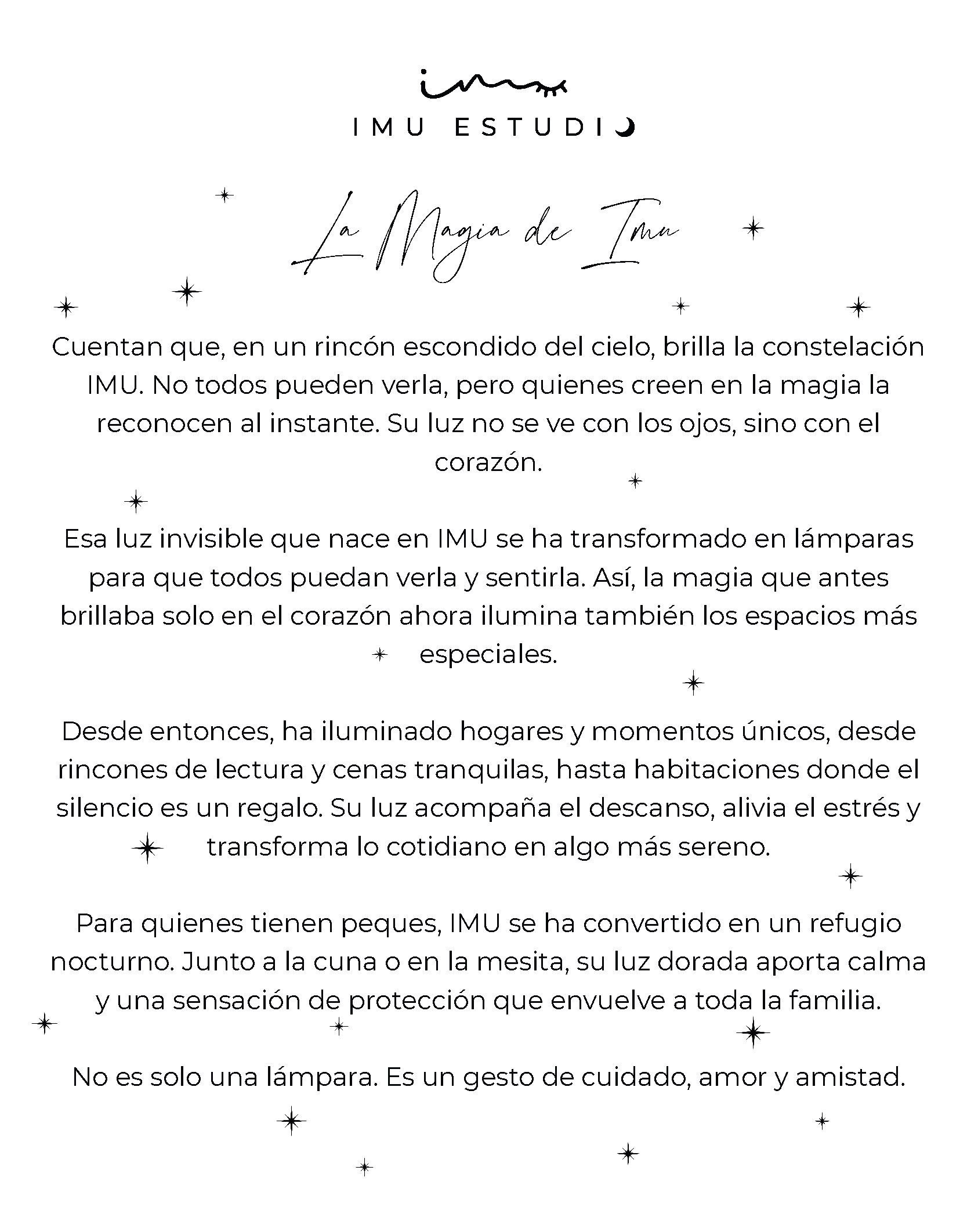 Esa luz invisible que nace en IMU se ha transformado en lámparas para que todos puedan verla y sentirla. Así, la magia que antes brillaba sólo en el corazón ahora ilumina también los espacios más especiales.